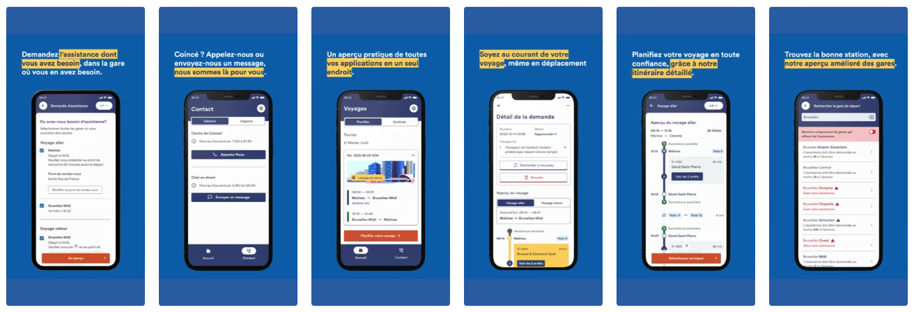 Vous pouvez dès à présent télécharger l’App SNCB Assist sur l'App Store d'Apple (IOS) et sur Google Play (Android).